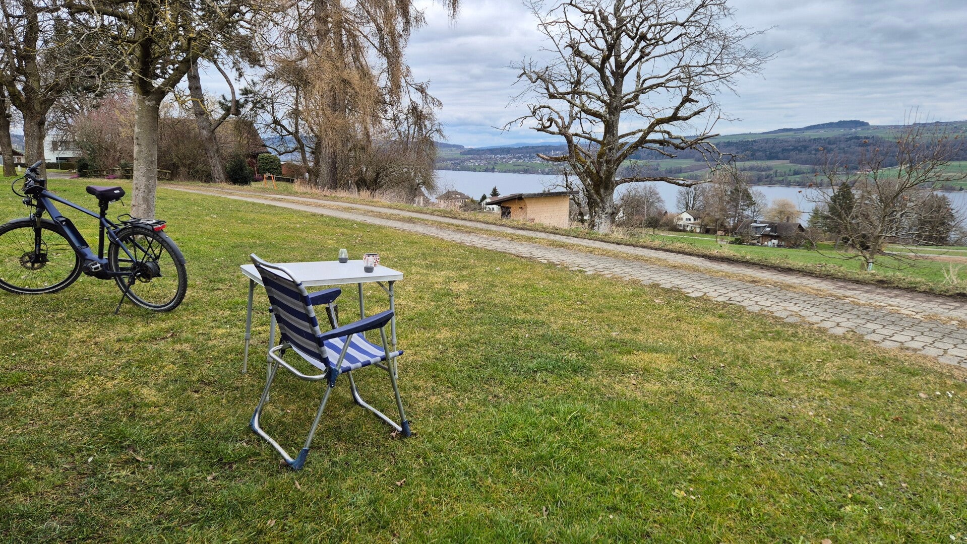 Der Nomady-Stellplatz in Beinwil am See liegt idyllisch mitten in einem Obstgarten mit direktem Blick auf den Hallwilersee. Gäste können hier in ruhiger, naturnaher Umgebung campen.