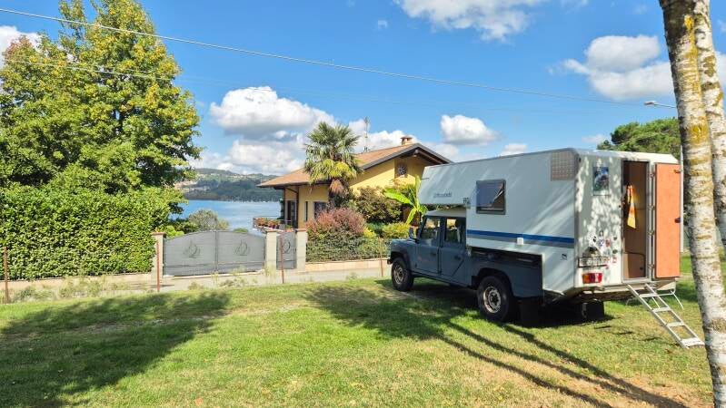 Stellplatz ähnlicher Campingplatz auf schöner Rasenfläche mit Blick auf den Lago Viverone