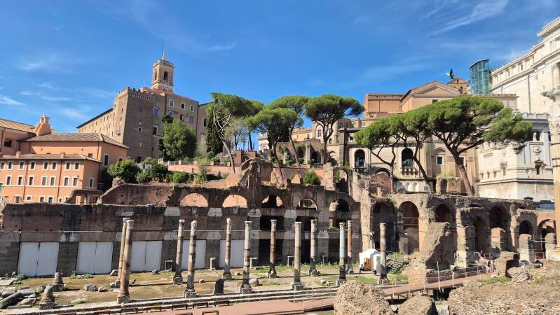 7 Euro bezahlen wir für die ÖV Tageskarte "Rom". Mit Bus, Zug und U-Bahn erreichen wir die Metropole in 1 1/4 Stunden. Wir erkunden, quasi im Strom von tausenden Besuchern aus aller Welt die Sehenswürdigkeiten, die alle recht nahe beieinander liegen. Kolosseum, Piazza Navona (Mit durch Baugerüste verdeckte Brunnen), Trevi-Brunnen, Pantheon, Spanische Treppe (Wo ich mich auf exakt die Stelle setzen kann, wo einst Gregory Peck und die wunderbare Audrey Hepburn flanierten), Engelsburg und am schluss noch der Petersdom und dann... verlaufen wir uns auf der Suche nach der U-Bahn Station.