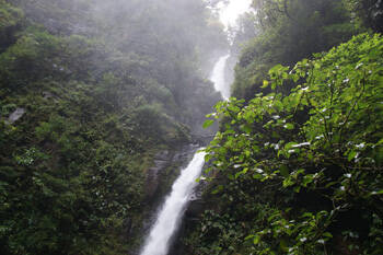 Wir entschliessen uns, heute den Wasserfall St. Luis zu besuchen. Die Strecke ist nur mit Allrad zu bewältigen. Unterwegs geniessen wir einen herrlichen Ausblick auf den Pazifik und die Nicoya Halbinsel. Am Parkeingang werden wir freundlich begrüsst. Die Strecke zum Wasserfall soll nur 1300 Meter betragen und in einer halben Stunde zu schaffen sein. Wir lassen uns jedoch Zeit und geniessen den wunderschönen Wald mit seiner vielfältigen Flora. Es gilt immer wieder den Bach, der immer breiter wird, auf recht abenteuerliche Weise zu queren. So balancieren wir über darübergelegte, glitschige Baumstämme oder aber über grosse Steine. Einigermassen trockenen Fusses kommen wir nach 2 Stunden beim Wasserfall an. Wir sind überwältigt von seiner Schönheit, seiner Höhe und den Unmengen von Wasser, die er mit sich führt. Nach einer halbstündigen Pause machen wir uns wieder auf den Rückweg. Für uns ist nicht vorstellbar, wie man den Weg in einer halben Stunde schaffen sollte. Wir müssten ja durch den tollen Urwald im Schweinsgalopp springen und würden all die Schönheiten die die Natur zu bieten hat, links liegen lassen.