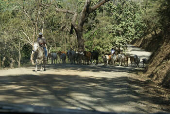 Die heutige Fahrt führt uns an die Nicaraguanische Grenze. Unter uns wird Schlagloch gepflasterte Strecke abgerollt. Im Sekundentakt muss ich Entscheidungen treffen. Links vorbei, rechts vorbei, mitten durch& Kein Vergleich zu einer gemütlichen Ausfahrt zu Hause. Die Costaricaner haben sich was einfallen lassen, um den unablässig zunehmenden Verkehr in den Griff zu bekommen. Je nach Endung der Verkehrsschild-Nummer dürfen gewisse Strecken an gewissen Tagen nicht befahren werden.