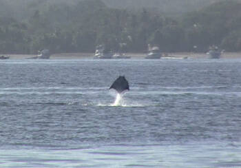 Die Fahrt endet am Grenzfluss zu Nicaragua, dem Rio San Juan. Im Grenzfluss hat es auch Bullenhaie, welche zwischen Atlantik und Nicaraguasee pendeln und vermutlich eine eigene Art bilden.