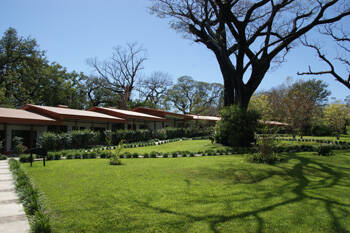 Frisch gestärkt nehmen wir die letzten Kilometer unter die Räder. Ohne Probleme finden wir die Lodge. Auf einem weitläufigen Gelände stehen 8 grosse Bungalows mit noch grösserer Glasfront.