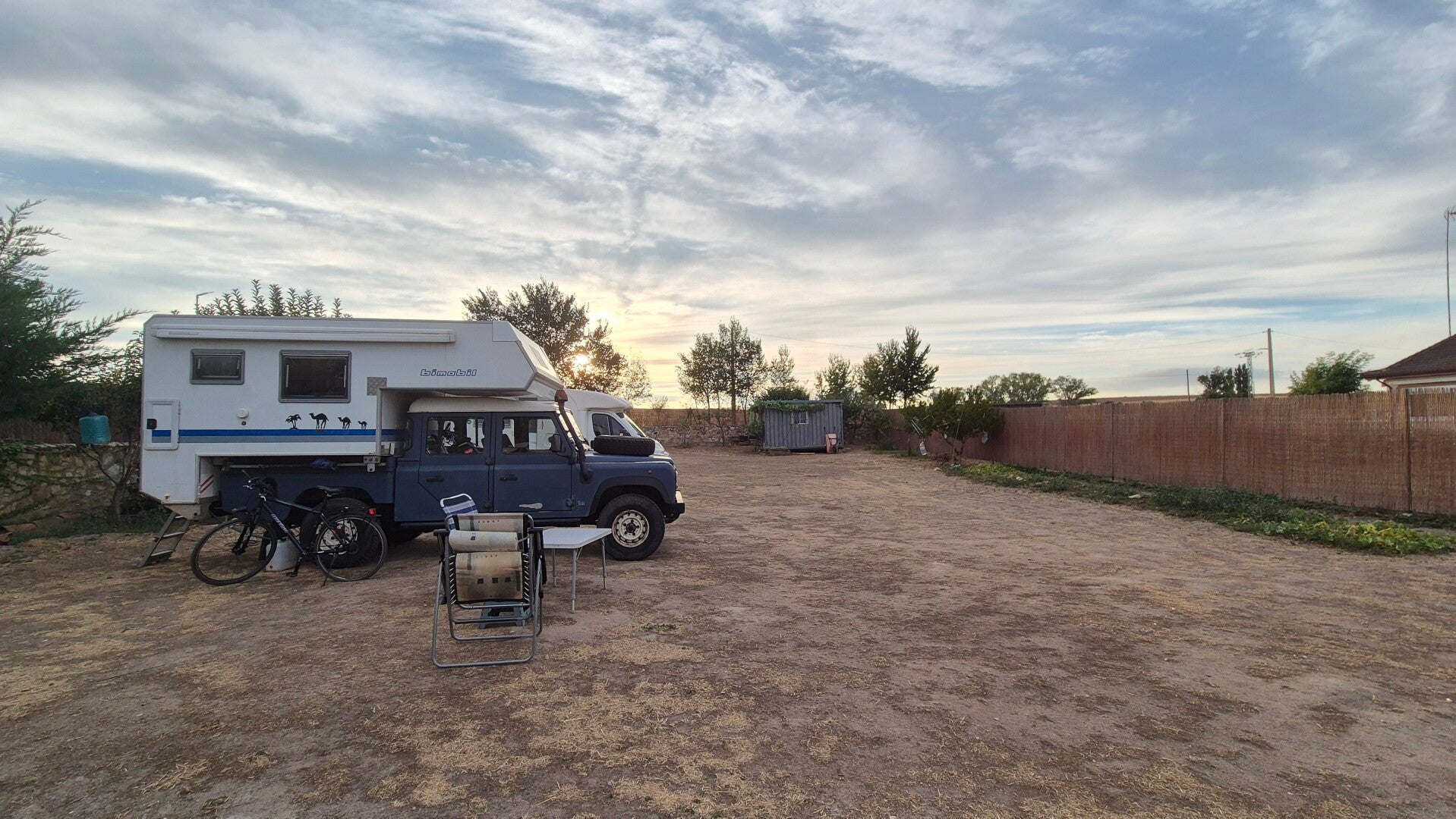 Ein prächtiges Morgenrot versüsst meine Abfahrt am frühen Morgen. Diese führt als weiteres Highlight direkt durch das Gebirge des Urkiola Naturparks und entlang eines Stausees. Danach folgt ein Autobahnabschnitt, der durch eine imposante Felslandschaft führt. Bald schon ändert sich das Landschaftsbild und dürre Felder mit Gelb und Brauntönen bestimmen die Szenerie. Ein paar wenige, bewässerte Sonnenblumenfelder trotzen der Tristesse. Nach etwa 450 km erreiche ich Morille. Auf einen rechteckigen Grundstück mit Apfelbäumen kann ich einparken. Das morbide Städtchen bezaubert mit Western-Flair. Menschenleere Gässchen, kreisene Raubvögel, Pferde und Kühe. Eine kurze Radfahrt führt mich zu einem kleinen See. Der Rückweg über die Schotterstrasse wird zum Kleinkrieg mit dem heftigen Gegenwind. Ein WOMO mit einem spanischen Pärchen hat sich zu mir gesellt. Sie kommen aus Sevilla und morgen sind die Ferien zu ende. Das ist so ziemlich alles was ich aus dem spanischen herausfiltern kann. Er raucht noch seine Zigarillo und verabschiedet sich wieder in das versiegelte* Gefährt (*Versiegelt = Fenster zu, Vorhänge zu, Türe zu, Frontscheibe abgedeckt. Unter WOMO fahrern beliebter Freizeitspass).
