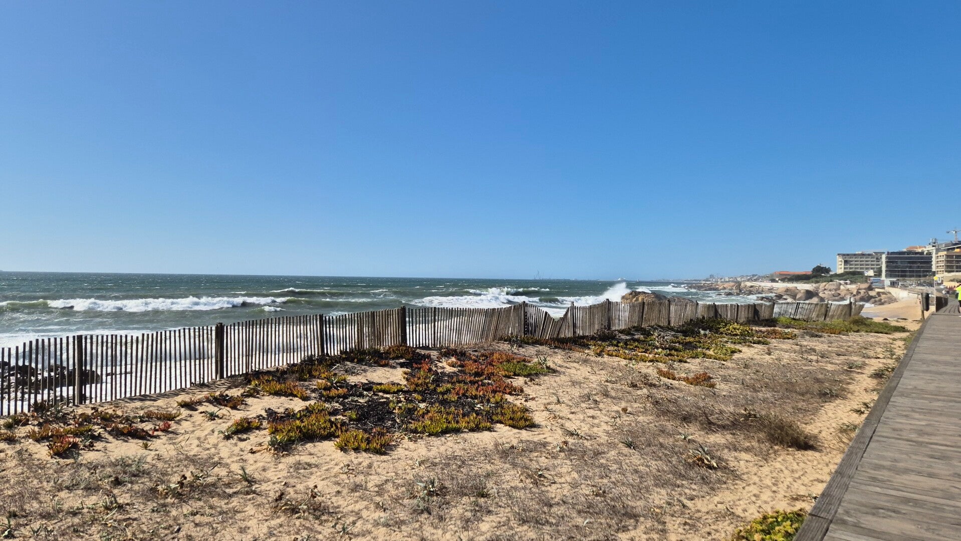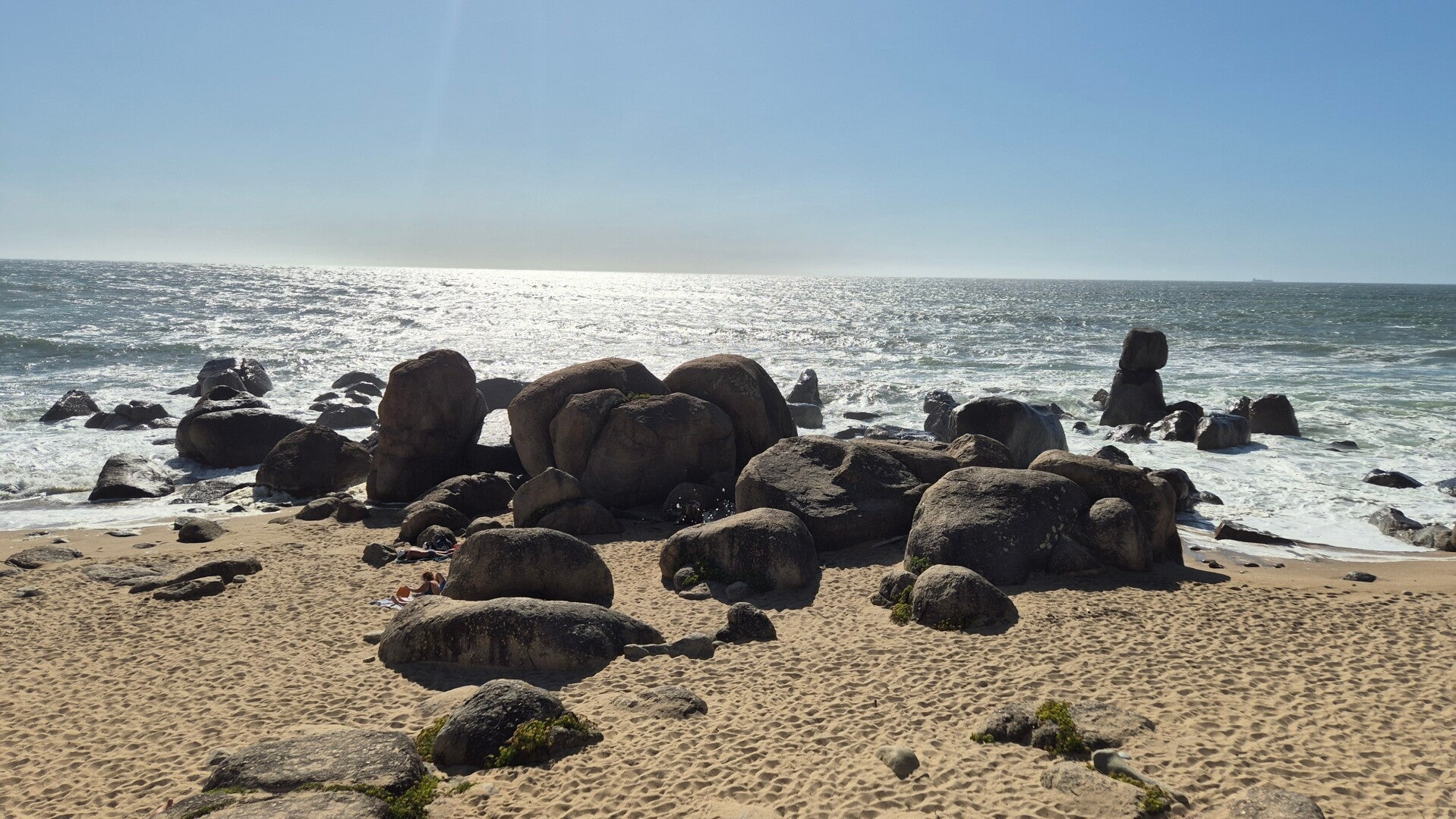 Nach diesem Zwischenhalt fahren wir weiter auf die Landzunge Costa Nova, wo wir auf den gleichnamigen Camping abbiegen. Im Naheliegenden Costa Nova do Prado bewundern wir die bezaubernden Häschen, die sich wie an einer Perlkette aneinander reihen. Bei diesigem Wetter gehen wir anschliessend in eine Strandbar, und bestaunen die mächtigen Wellen des Atlantiks, die mit grosser Wucht am Strand brechen.