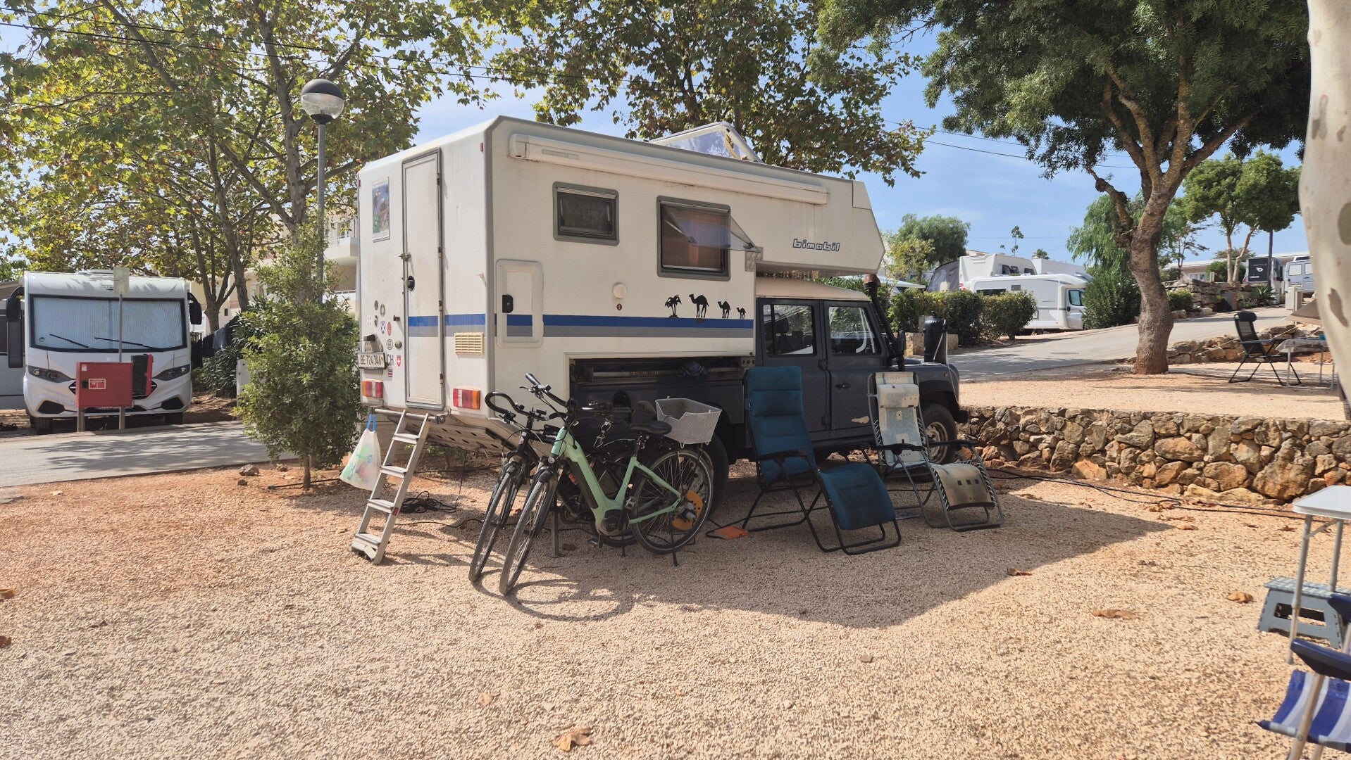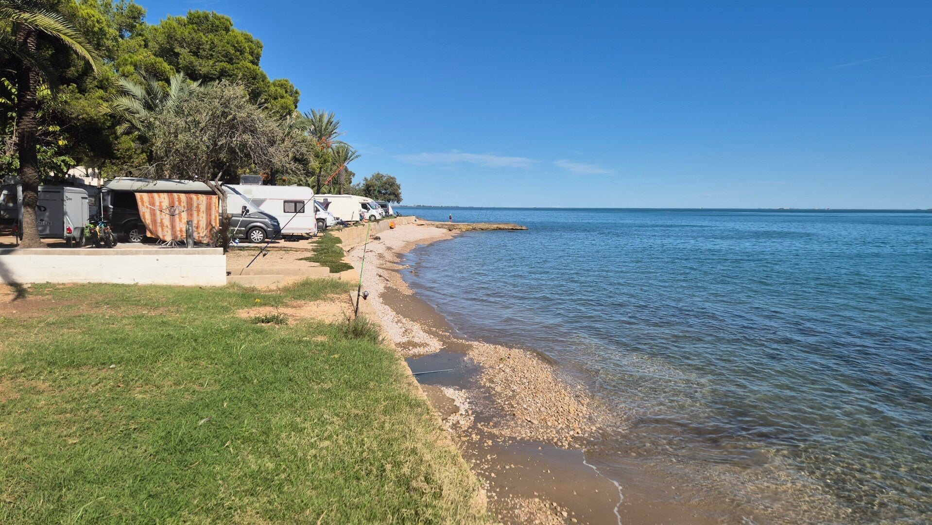 Die Abfahrt aus dem Camp führt wieder über abenteuerliche Sandpisten. Danach über eine holprige Strasse und letztlich auf die Autobahn. Das letzte Stück Andalusien bietet wieder traumhafte Landschaften. Dann folgt schon bald Valencia, das ich grossräumig umfahren kann. Beim Camping Yelloh Village Alfacs fahre ich bei prächtigem Wetter auf eine schattige Parzelle. Ein kleiner Camping mit direktem Strandanschluss. Schade hat es ganz vorne keine freien Plätze, das wäre dann direkter Meeranschluss. Ich geniesse den Nachmittag mit schwimmen in Meer & Pool, bekomme am Abend einen schmackhaften Dorsch serviert und schliesse mit einem randvollen Aperol-Spritz ab. Prost!
