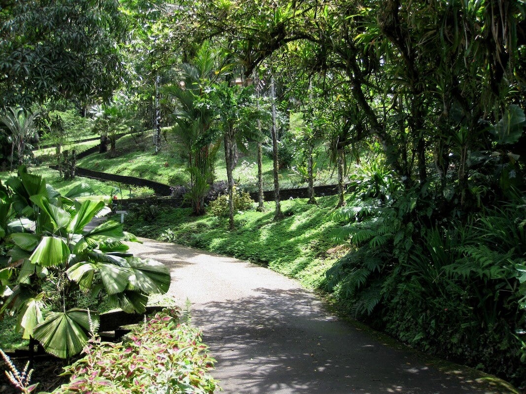 Das Anwesen war ursprünglich eine Kaffeefinca und wurde zu einem tropischen Garten mit seltenen Palmenarten und exotischen Pflanzen aus aller Welt umgestaltet. Durch seine Lage auf etwa 550 Metern Höhe herrscht ein angenehm gemäßigtes Klima mit warmen Tagen und kühlen Nächten. Die Umgebung ist geprägt von üppigem Regenwald, in dem zahlreiche Tierarten leben – häufig lassen sich Brüllaffen, Tukane und über 250 verschiedene Vogelarten beobachten.