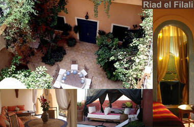 Der Patio, mit einem kleinen Brunnenbecken, Bäumen und Pflanzen verziert, lädt zum ausruhen und erfrischen ein. El Filali bietet mit seinem versteckten Garten Erholung pur.
