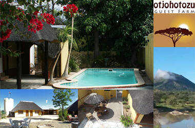 Entdecken Sie auf über 7000 Hektar eine der aufregendsten und schönsten Landschaften Namibias – die Erongoberge. Etwa 15 Kilometer westlich der kleinen Stadt Omaruru, in einem riesigen Natur- und Tierschutzgebiet bietet die Otjohotozu Gästefarm den idealen Ort zur Entspannung oder zu unvergesslichen Abenteuern. Gigantische Felsformationen, Trockenflüsse und eine vielfältige Flora und Fauna mit unzähligen Tieren erwartet Sie. Da das Gebiet sehr reich an Wild ist trifft man mit ein bisschen Glück neben zahlreichen Antilopen und Zebras auch auf Giraffen, Geparden, Leoparden und die seltenen und bedrohten Spitzmaulnashörner, deren Schutz in dieser Region ein wichtiges Thema ist (www.erongomountains.org). Sie sind eingelanden zu einer Reise durch einen Teil Namibias, dessen Schönheit so vielseitig ist, dass man mit der Entdeckung besser schon bald beginnt. Das Erongogebirge liegt im Herzen des namibischen Hochlandes. Eine Vulkanlandschaft bietet Berge und flaches Land – ein Paradies für Tiere und Menschen. Hier kann man noch ungestörte Natur erleben, kleine Wanderungen unternehmen oder an einem Wasserloch auf Tiere warten und sie dann beobachten. Auch der nahegelegene Fluss Omaruru, der nur in der Regenzeit Wasser führt, läd zu Entdeckungen ein. Das Haus liegt eingefriedet von Grün inmitten dieser weiten und großartigen Landschaft. Die Gastgeber versuchen Ihnen jeden Wunsch zu erfüllen, so dass Sie Ihren Aufenthalt ganz sicher genießen können um am „Platz der Ruhe“ entspannen können. Im schönen Swimming-Pool kann man sich von den Ausflügen, Wanderungen und der Wärme des Tages erfrischen. Dazu kommt die besonders gute Küche. Hier wird liebevoll gekocht und das auf sehr abwechslungsreiche Art.