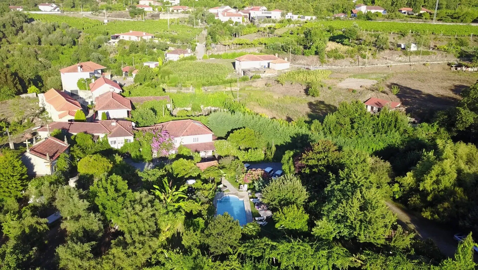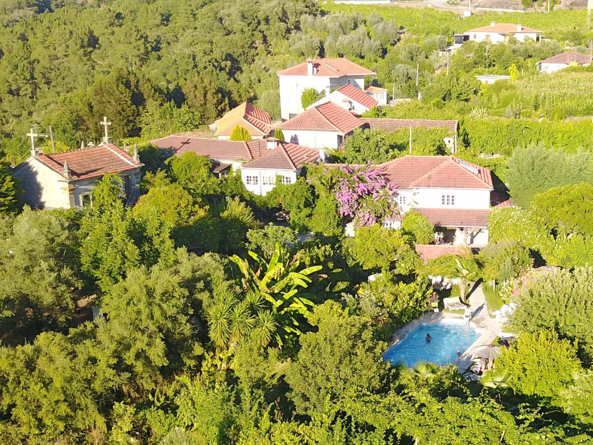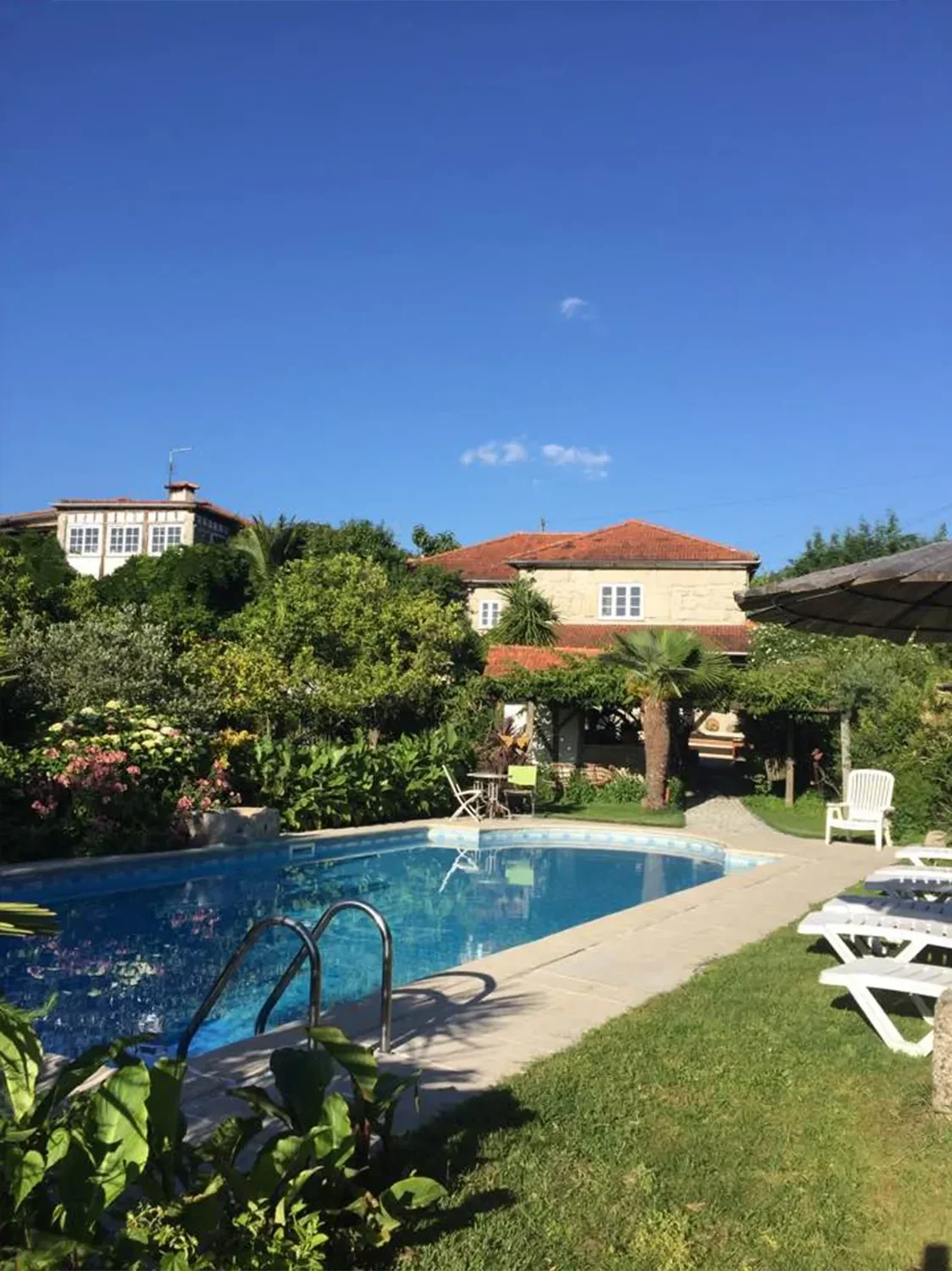 Die Quinta de Ribas liegt idyllisch in der sanften Hügellandschaft nahe der historischen Stadt Amarante im Norden Portugals. Umgeben von Weinbergen, Feldern und alten Bäumen vermittelt das Anwesen eine ruhige, authentische Atmosphäre. Das traditionelle Landhaus wurde mit viel Sorgfalt restauriert und verbindet regionale Architektur mit modernem Komfort. Die Zimmer sind hell, freundlich und individuell gestaltet, mit natürlichen Materialien und liebevollen Details. Große Fenster öffnen den Blick auf die grüne Umgebung und lassen viel Tageslicht herein. Die weitläufige Gartenanlage lädt zum Entspannen und Verweilen ein. Ein Pool sorgt an warmen Tagen für angenehme Erfrischung. Morgens erwartet die Gäste ein hausgemachtes Frühstück mit regionalen Produkten und saisonalen Zutaten. Die Gastgeber legen Wert auf eine persönliche und herzliche Betreuung. Die Quinta eignet sich ideal für Reisende, die Ruhe, Natur und authentische Begegnungen suchen. Von hier aus lassen sich die Weinregion Vinho Verde und das Douro-Tal gut erkunden. Auch Wanderungen, Radtouren oder Ausflüge in die umliegenden Dörfer bieten sich an. Die historische Altstadt von Amarante mit ihren Gassen, Cafés und Brücken ist schnell erreichbar. Die Kombination aus ländlicher Idylle und kulturellen Ausflugsmöglichkeiten macht den Aufenthalt besonders abwechslungsreich. Die Quinta de Ribas ist ein stimmungsvoller Ort für entspannte Tage im grünen Norden Portugals.