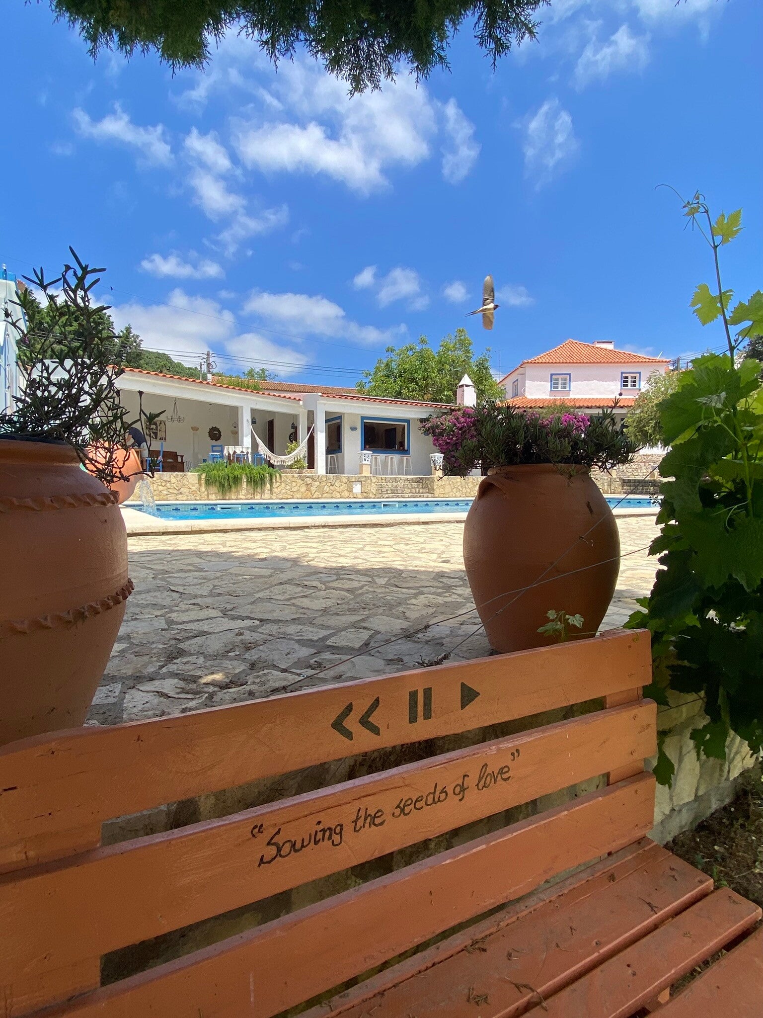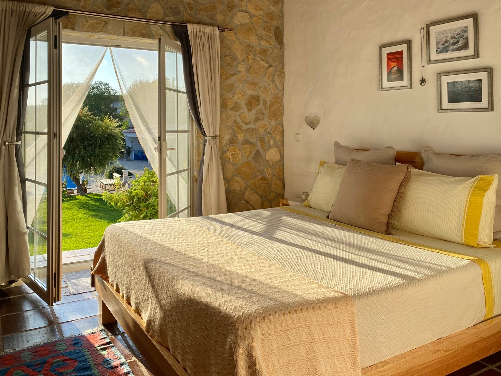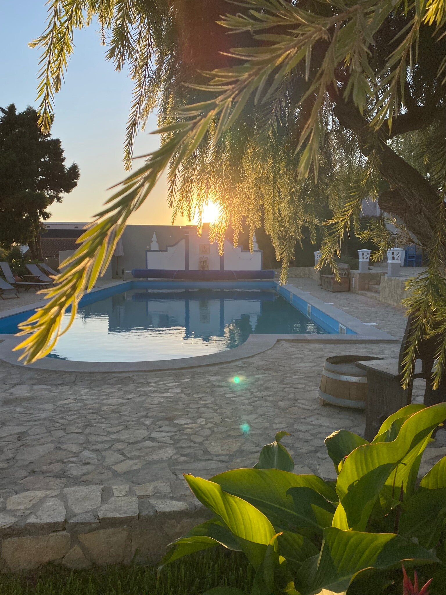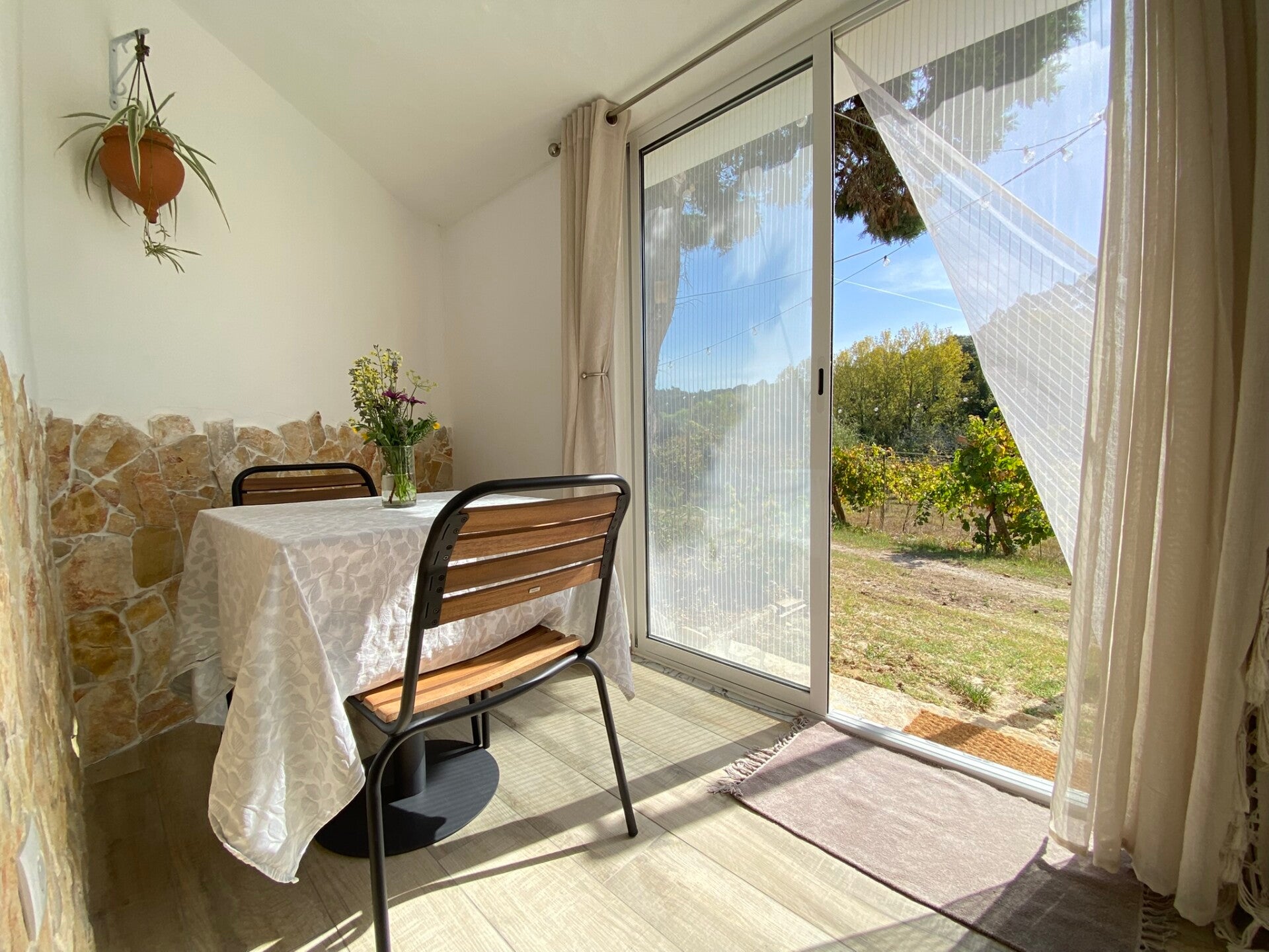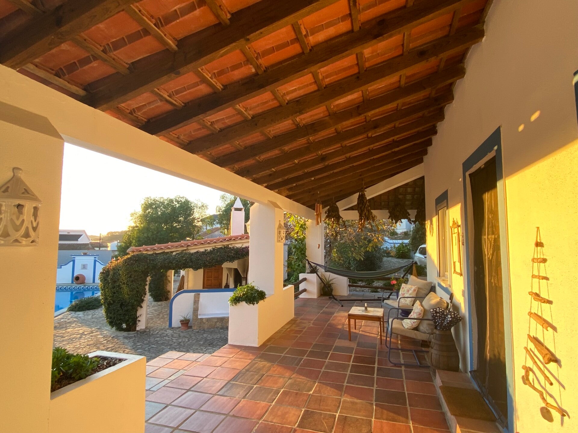 Die Quinta Mourada liegt in der sanften Hügellandschaft der portugiesischen Silberküste, rund 50 Minuten nördlich von Lissabon und nur wenige Kilometer von Lourinhã und seinen Stränden entfernt. Das Anwesen erstreckt sich über fast vier Hektar mit Weinreben, Obstgärten und einem kleinen Wald. Diese natürliche Umgebung schafft eine ruhige Atmosphäre, in der Gäste Abstand vom Alltag finden. Das Haus verbindet authentisches portugiesisches Handwerk mit Vintage-Elementen und einem bewussten, nachhaltigen Lebensstil. Die Quinta versteht sich als Ort für echte Begegnungen mit der Natur und mit sich selbst. Das Konzept setzt auf Entschleunigung, Wohlbefinden und eine persönliche, intime Atmosphäre. Ein historischer Weinkeller, eine finnische Sauna und gemütliche Aufenthaltsbereiche laden zum Entspannen ein. Die wenigen Zimmer und ein Apartment sorgen dafür, dass die Stimmung ruhig und individuell bleibt. Morgens erwartet die Gäste ein liebevoll zubereitetes Frühstück mit regionalen, oft biologischen Produkten. Hausgemachtes Sauerteigbrot, Granola, Joghurt, Eier vom Hof und saisonale Früchte spiegeln den natürlichen Ansatz des Hauses wider. Auch eigener Wein und Kräutertees aus dem Garten gehören zum Erlebnis. Mehrere Gemeinschaftsbereiche, eine Lounge mit Projektor sowie Außenbereiche mit Pool und Grillplatz schaffen Raum für Begegnungen. Zusätzlich stehen Freizeitangebote wie Tischtennis, Spiele, kreative Materialien und sogar Musikinstrumente bereit. Die Quinta eignet sich besonders für kreative Auszeiten, kleine Retreats oder romantische Aufenthalte in der Natur. So entsteht ein Ort, an dem Gäste zur Ruhe kommen, neue Energie sammeln und die portugiesische Landschaft in authentischer Atmosphäre erleben.
