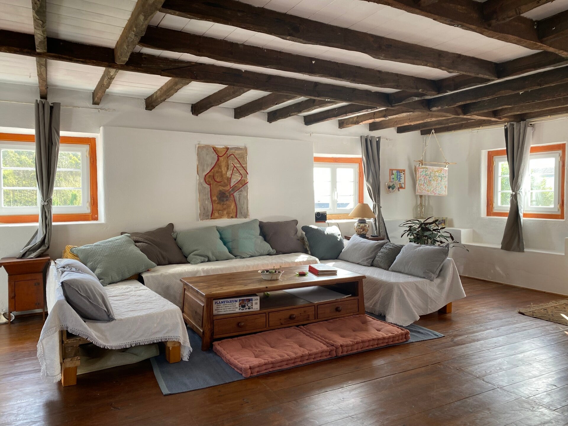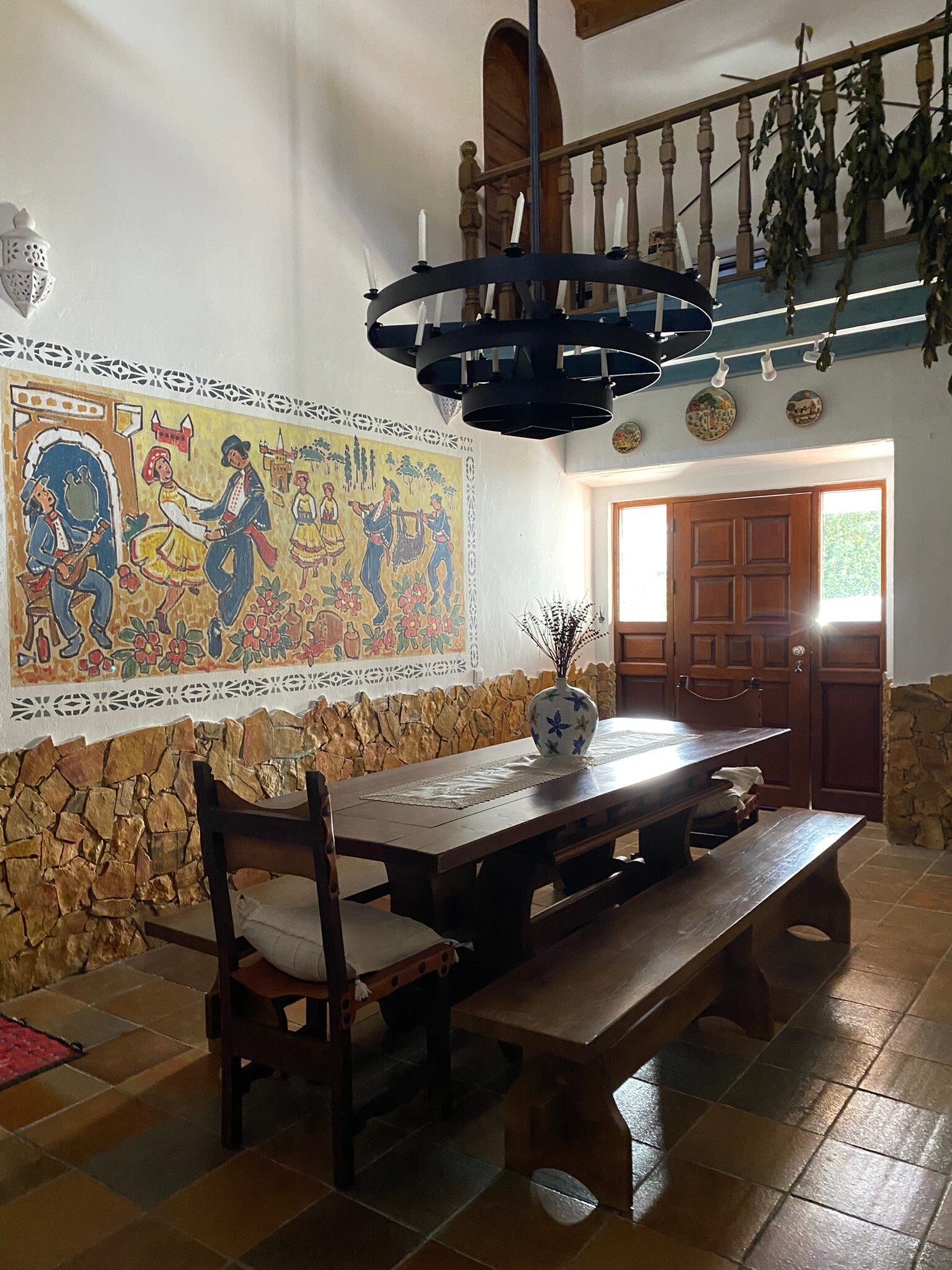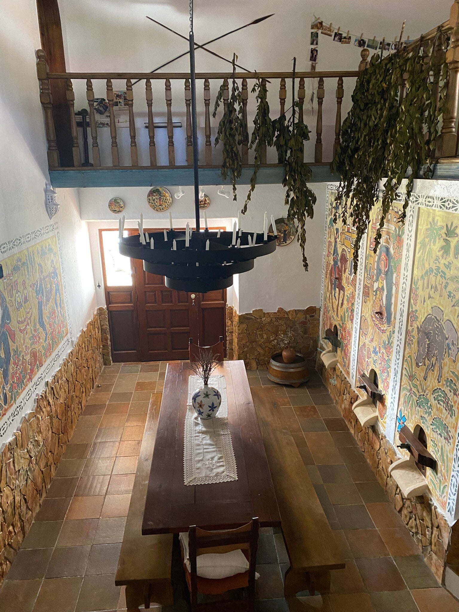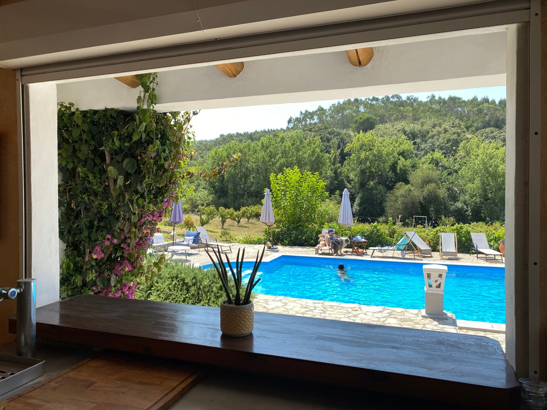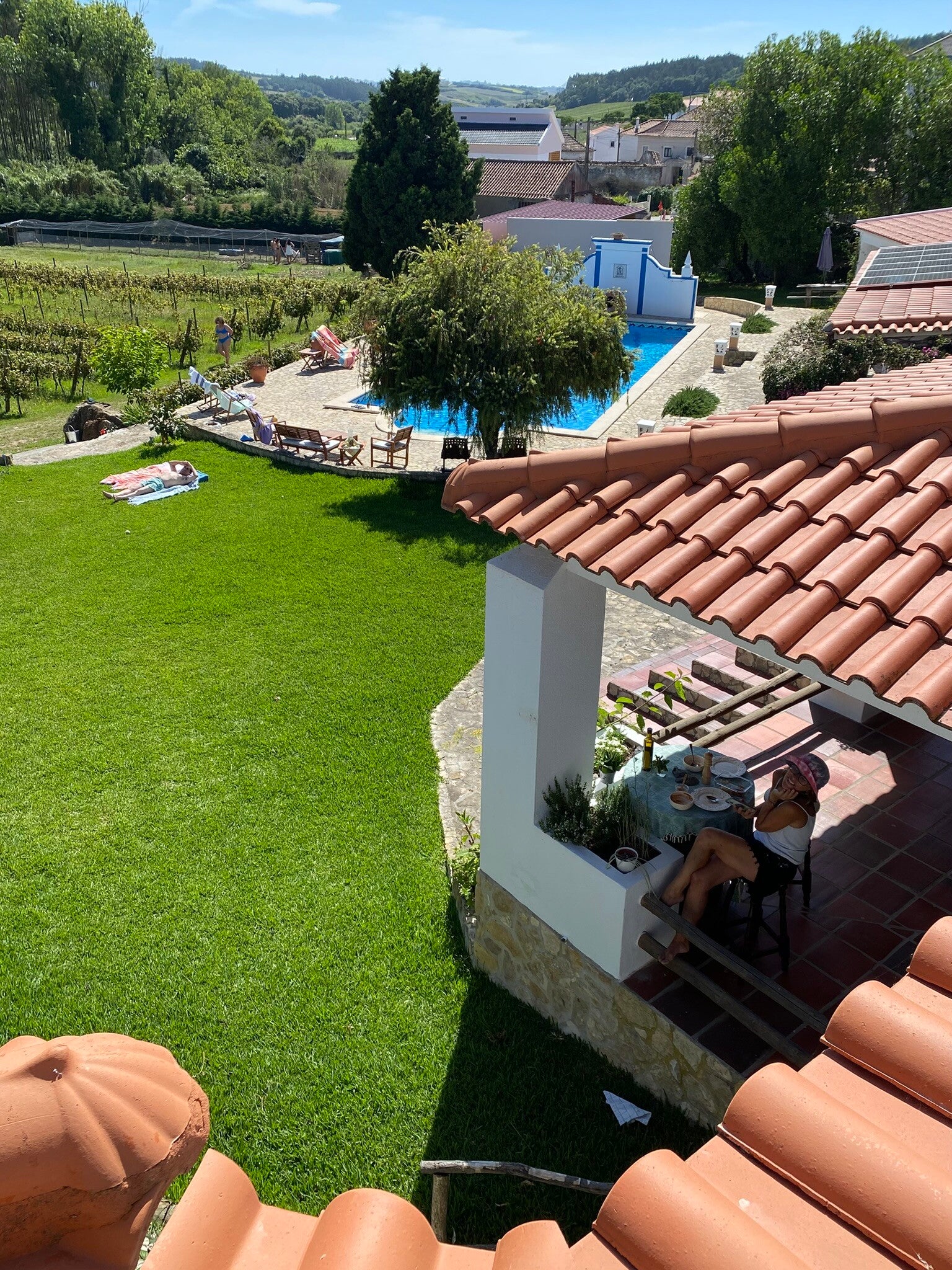 Die Quinta Mourada liegt in der sanften Hügellandschaft der portugiesischen Silberküste, rund 50 Minuten nördlich von Lissabon und nur wenige Kilometer von Lourinhã und seinen Stränden entfernt. Das Anwesen erstreckt sich über fast vier Hektar mit Weinreben, Obstgärten und einem kleinen Wald. Diese natürliche Umgebung schafft eine ruhige Atmosphäre, in der Gäste Abstand vom Alltag finden. Das Haus verbindet authentisches portugiesisches Handwerk mit Vintage-Elementen und einem bewussten, nachhaltigen Lebensstil. Die Quinta versteht sich als Ort für echte Begegnungen mit der Natur und mit sich selbst. Das Konzept setzt auf Entschleunigung, Wohlbefinden und eine persönliche, intime Atmosphäre. Ein historischer Weinkeller, eine finnische Sauna und gemütliche Aufenthaltsbereiche laden zum Entspannen ein. Die wenigen Zimmer und ein Apartment sorgen dafür, dass die Stimmung ruhig und individuell bleibt. Morgens erwartet die Gäste ein liebevoll zubereitetes Frühstück mit regionalen, oft biologischen Produkten. Hausgemachtes Sauerteigbrot, Granola, Joghurt, Eier vom Hof und saisonale Früchte spiegeln den natürlichen Ansatz des Hauses wider. Auch eigener Wein und Kräutertees aus dem Garten gehören zum Erlebnis. Mehrere Gemeinschaftsbereiche, eine Lounge mit Projektor sowie Außenbereiche mit Pool und Grillplatz schaffen Raum für Begegnungen. Zusätzlich stehen Freizeitangebote wie Tischtennis, Spiele, kreative Materialien und sogar Musikinstrumente bereit. Die Quinta eignet sich besonders für kreative Auszeiten, kleine Retreats oder romantische Aufenthalte in der Natur. So entsteht ein Ort, an dem Gäste zur Ruhe kommen, neue Energie sammeln und die portugiesische Landschaft in authentischer Atmosphäre erleben.