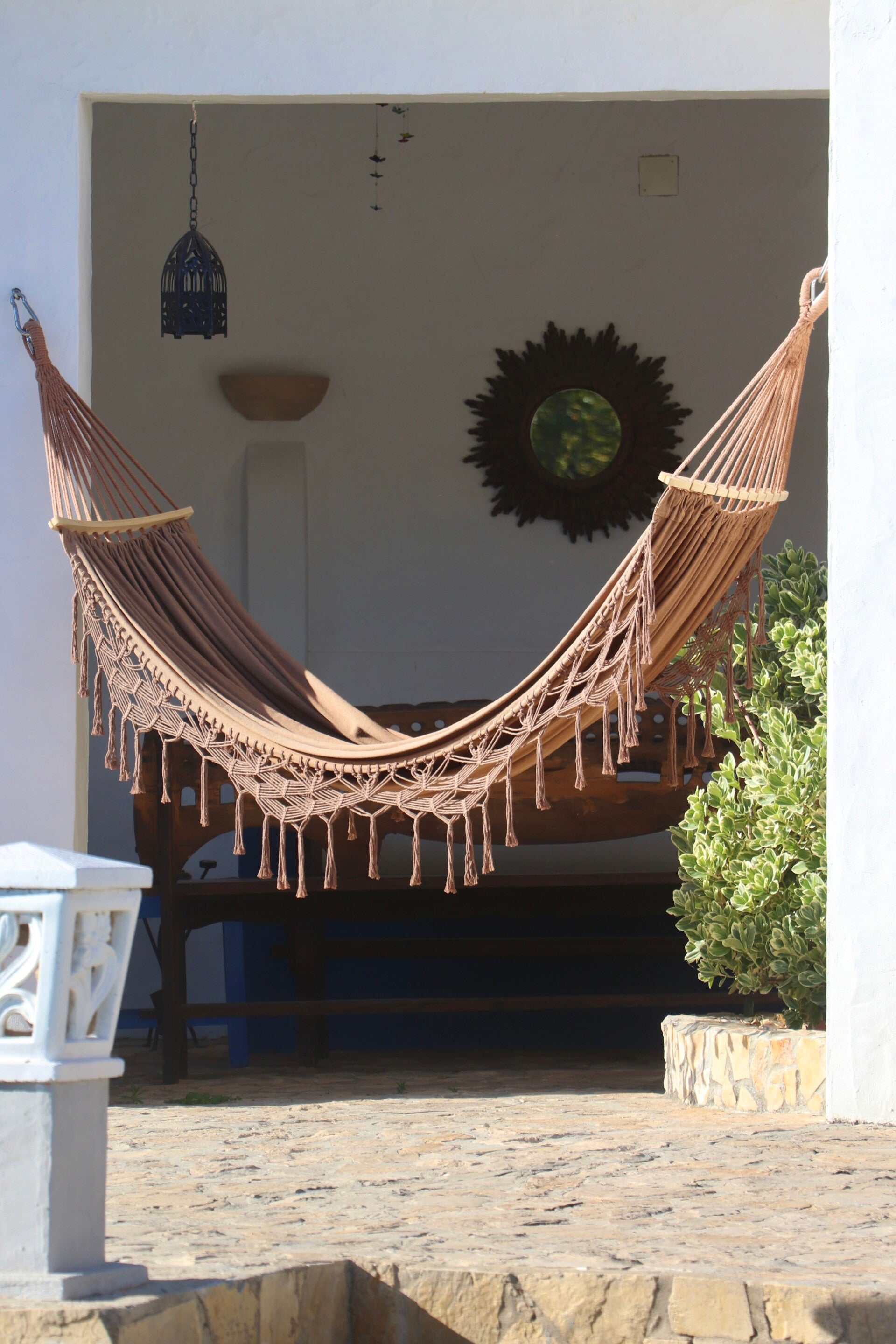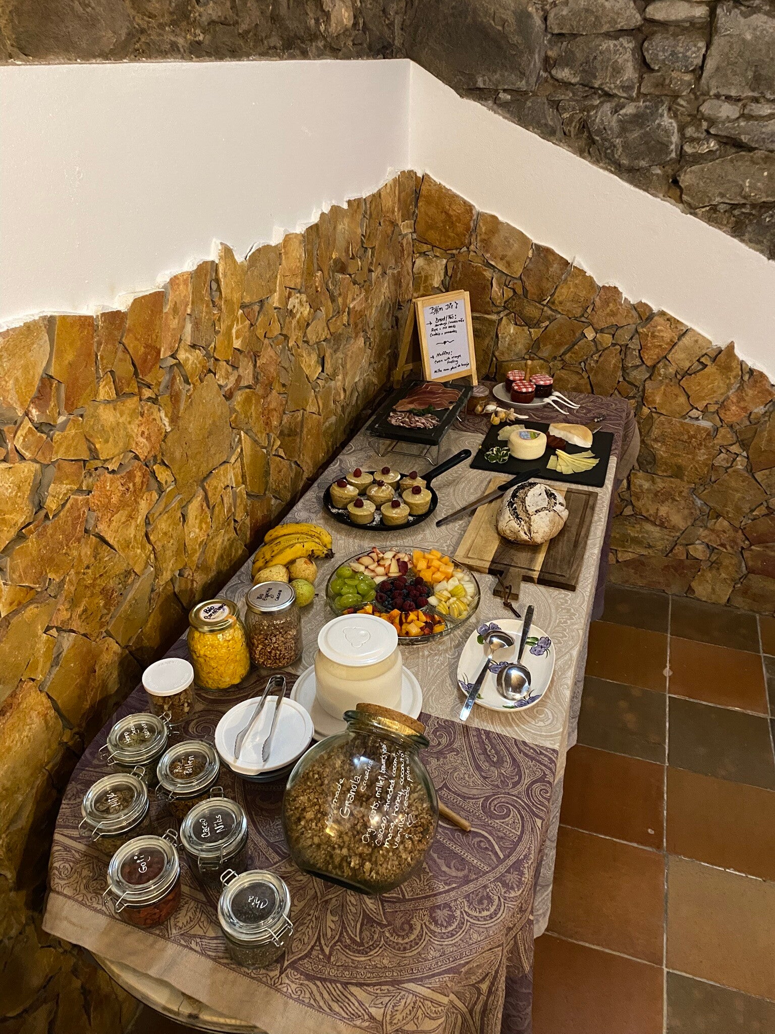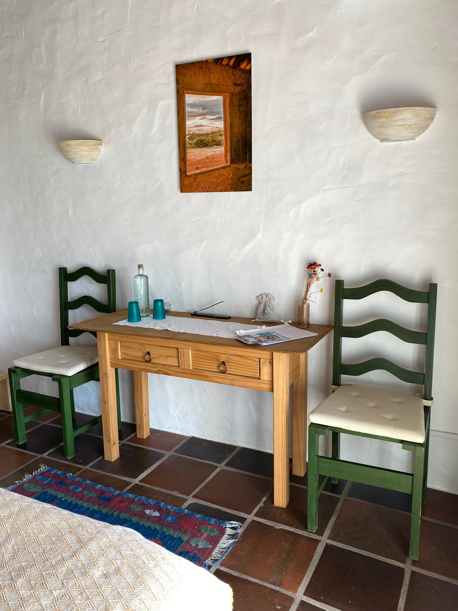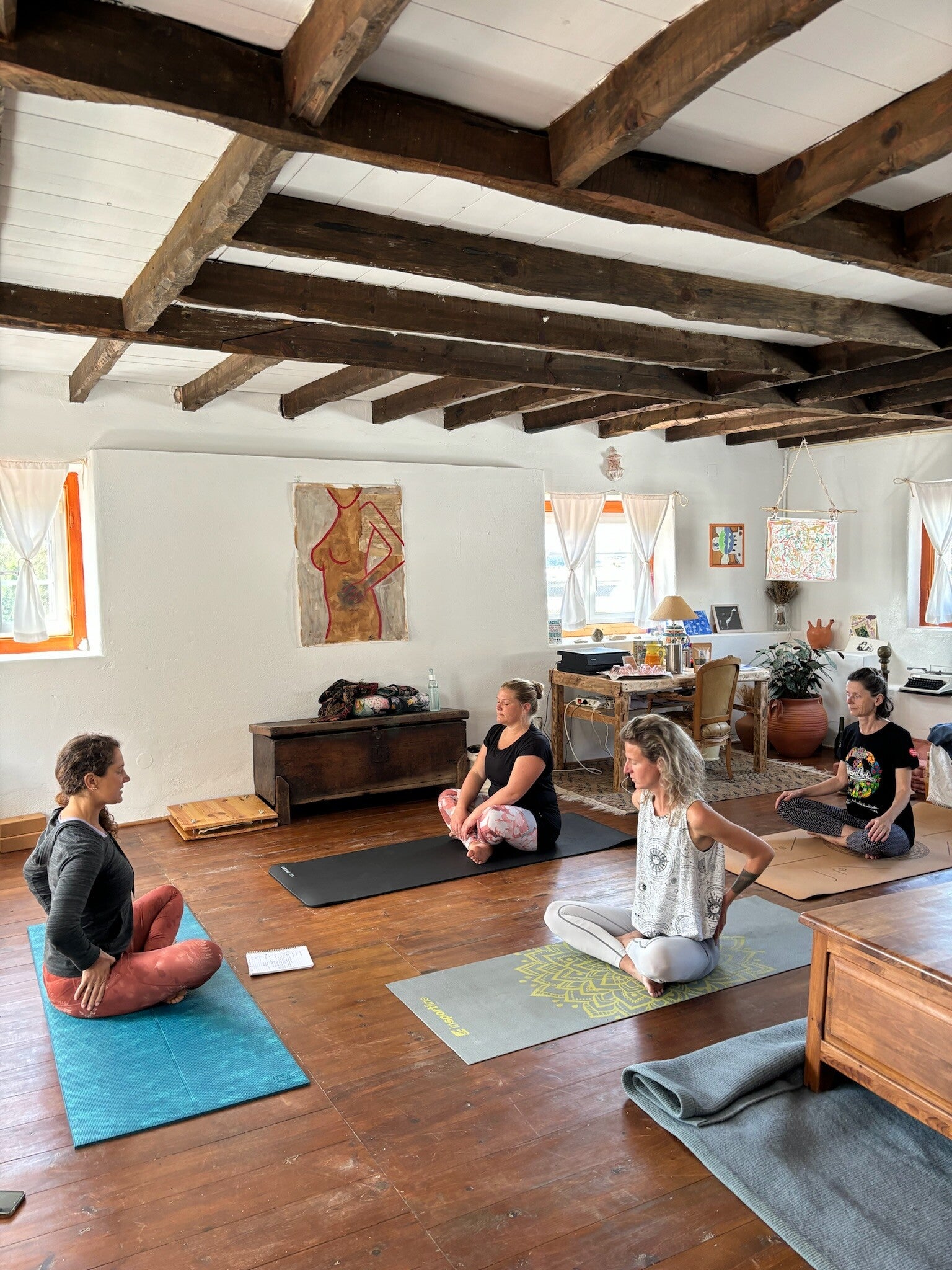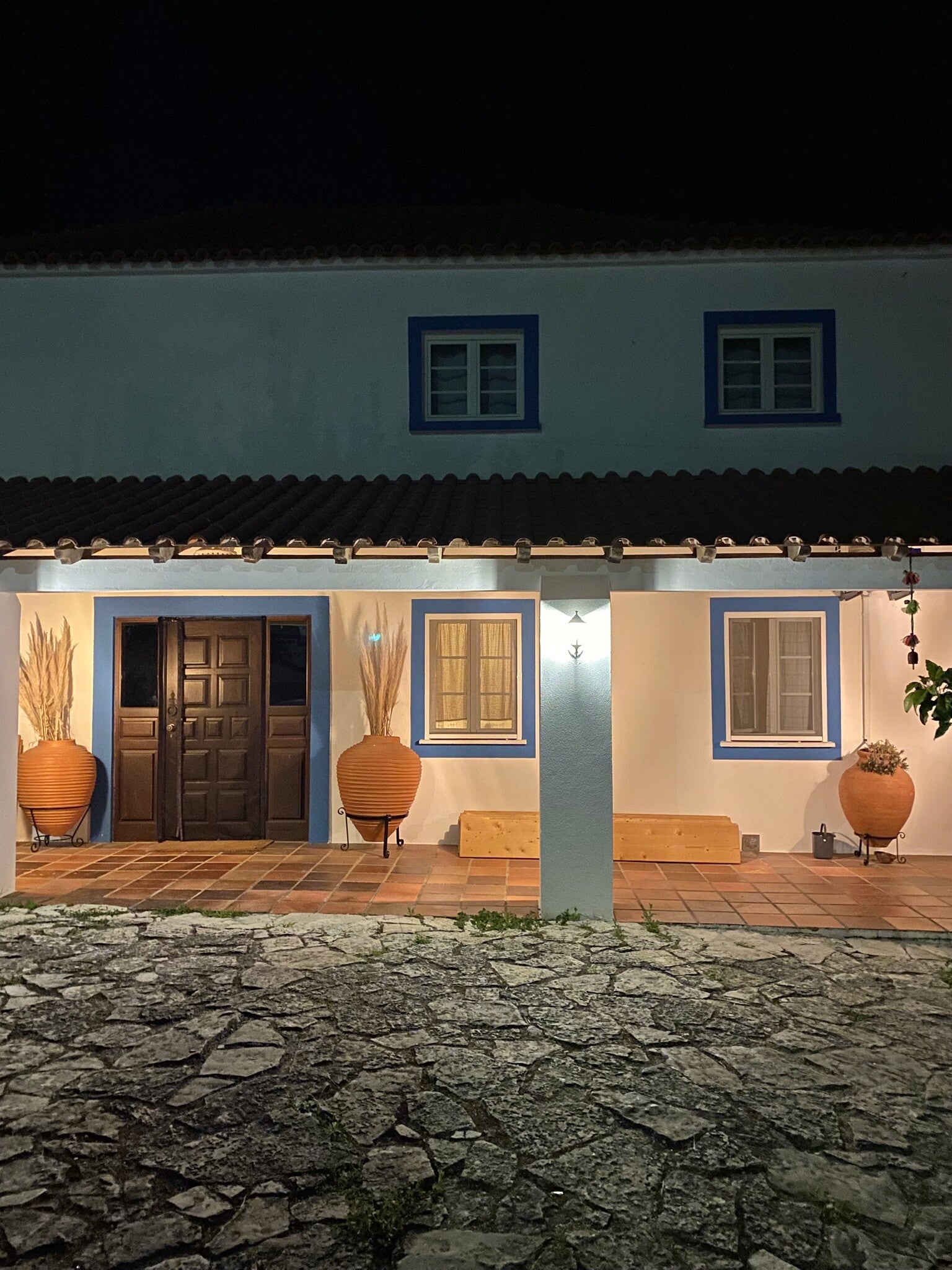Die Quinta Mourada liegt in der sanften Hügellandschaft der portugiesischen Silberküste, rund 50 Minuten nördlich von Lissabon und nur wenige Kilometer von Lourinhã und seinen Stränden entfernt. Das Anwesen erstreckt sich über fast vier Hektar mit Weinreben, Obstgärten und einem kleinen Wald. Diese natürliche Umgebung schafft eine ruhige Atmosphäre, in der Gäste Abstand vom Alltag finden. Das Haus verbindet authentisches portugiesisches Handwerk mit Vintage-Elementen und einem bewussten, nachhaltigen Lebensstil. Die Quinta versteht sich als Ort für echte Begegnungen mit der Natur und mit sich selbst. Das Konzept setzt auf Entschleunigung, Wohlbefinden und eine persönliche, intime Atmosphäre. Ein historischer Weinkeller, eine finnische Sauna und gemütliche Aufenthaltsbereiche laden zum Entspannen ein. Die wenigen Zimmer und ein Apartment sorgen dafür, dass die Stimmung ruhig und individuell bleibt. Morgens erwartet die Gäste ein liebevoll zubereitetes Frühstück mit regionalen, oft biologischen Produkten. Hausgemachtes Sauerteigbrot, Granola, Joghurt, Eier vom Hof und saisonale Früchte spiegeln den natürlichen Ansatz des Hauses wider. Auch eigener Wein und Kräutertees aus dem Garten gehören zum Erlebnis. Mehrere Gemeinschaftsbereiche, eine Lounge mit Projektor sowie Außenbereiche mit Pool und Grillplatz schaffen Raum für Begegnungen. Zusätzlich stehen Freizeitangebote wie Tischtennis, Spiele, kreative Materialien und sogar Musikinstrumente bereit. Die Quinta eignet sich besonders für kreative Auszeiten, kleine Retreats oder romantische Aufenthalte in der Natur. So entsteht ein Ort, an dem Gäste zur Ruhe kommen, neue Energie sammeln und die portugiesische Landschaft in authentischer Atmosphäre erleben.