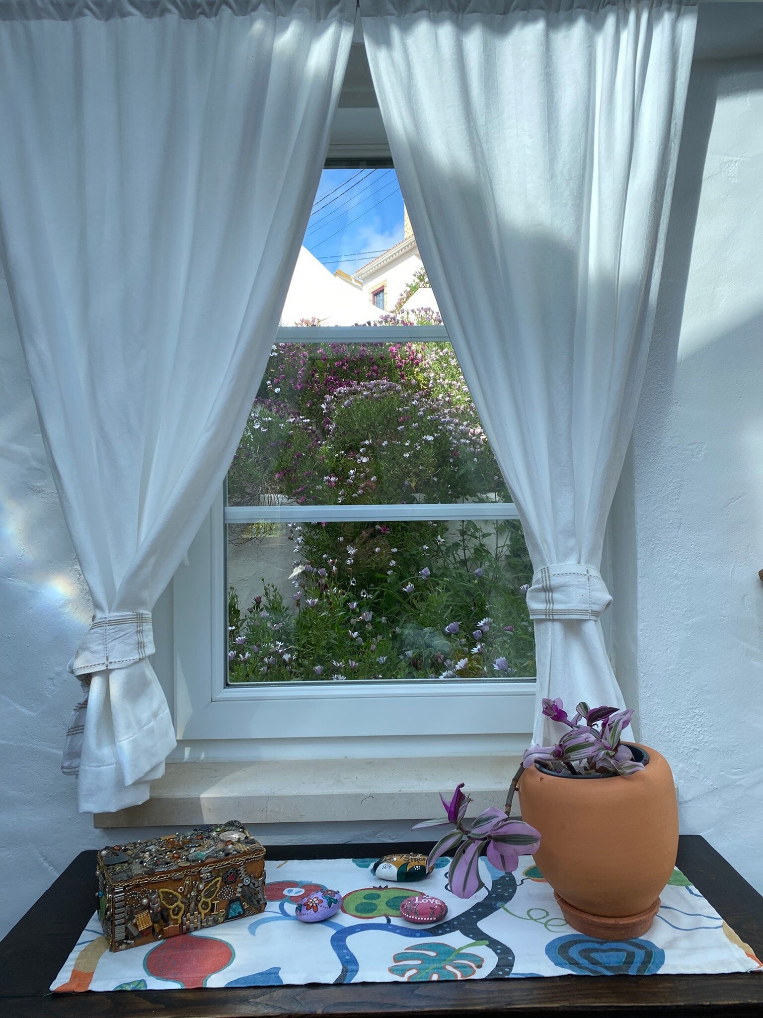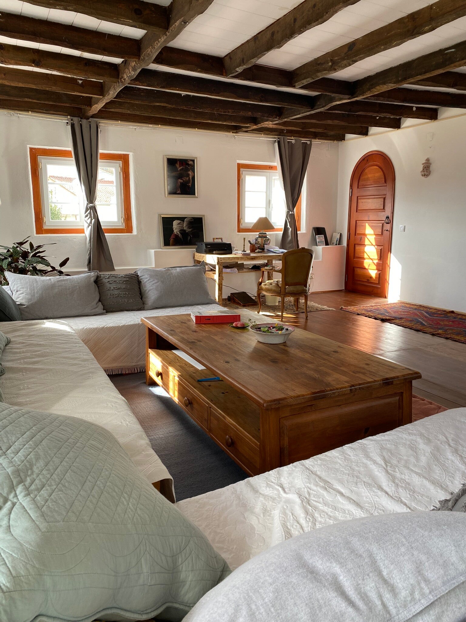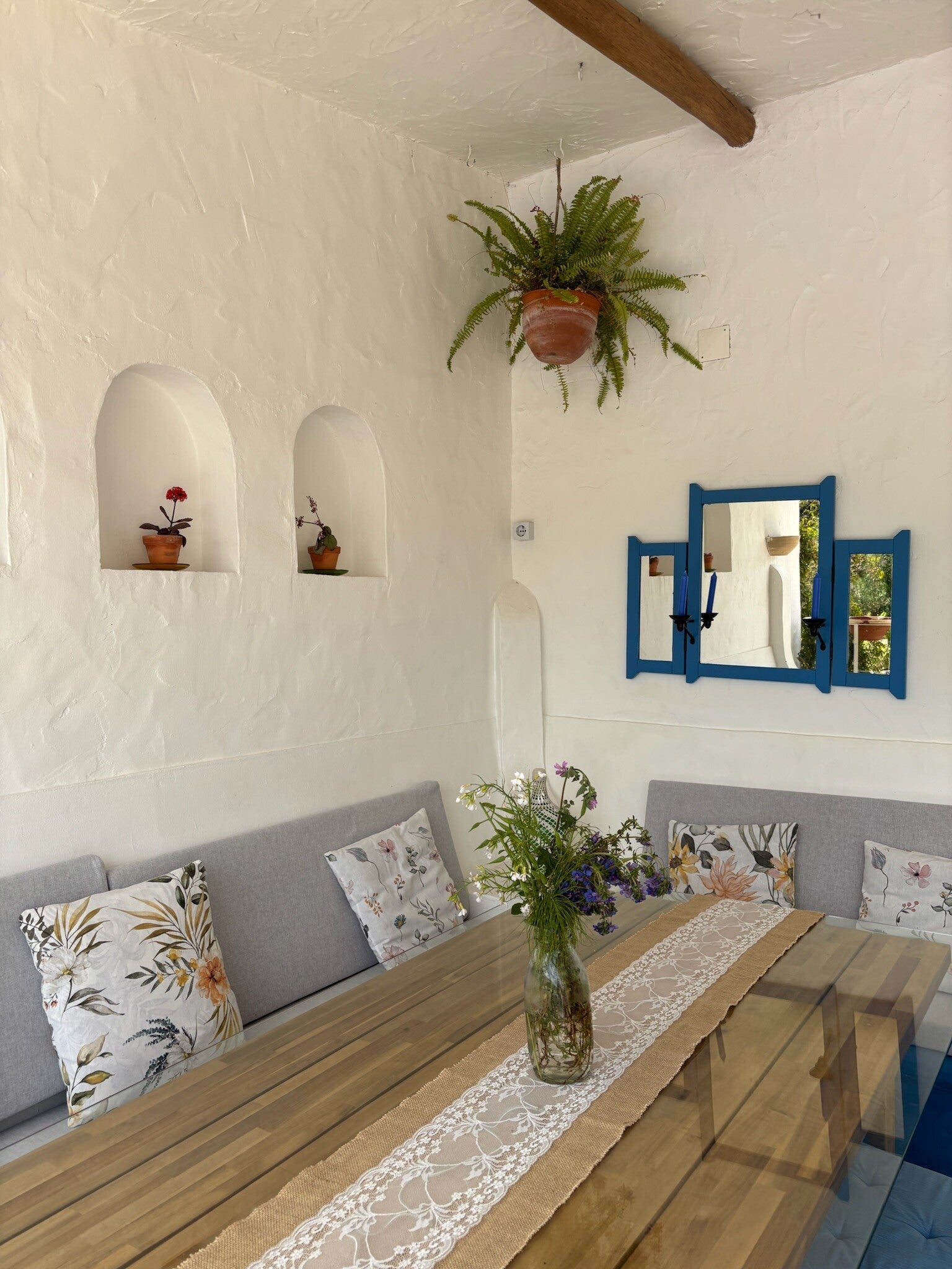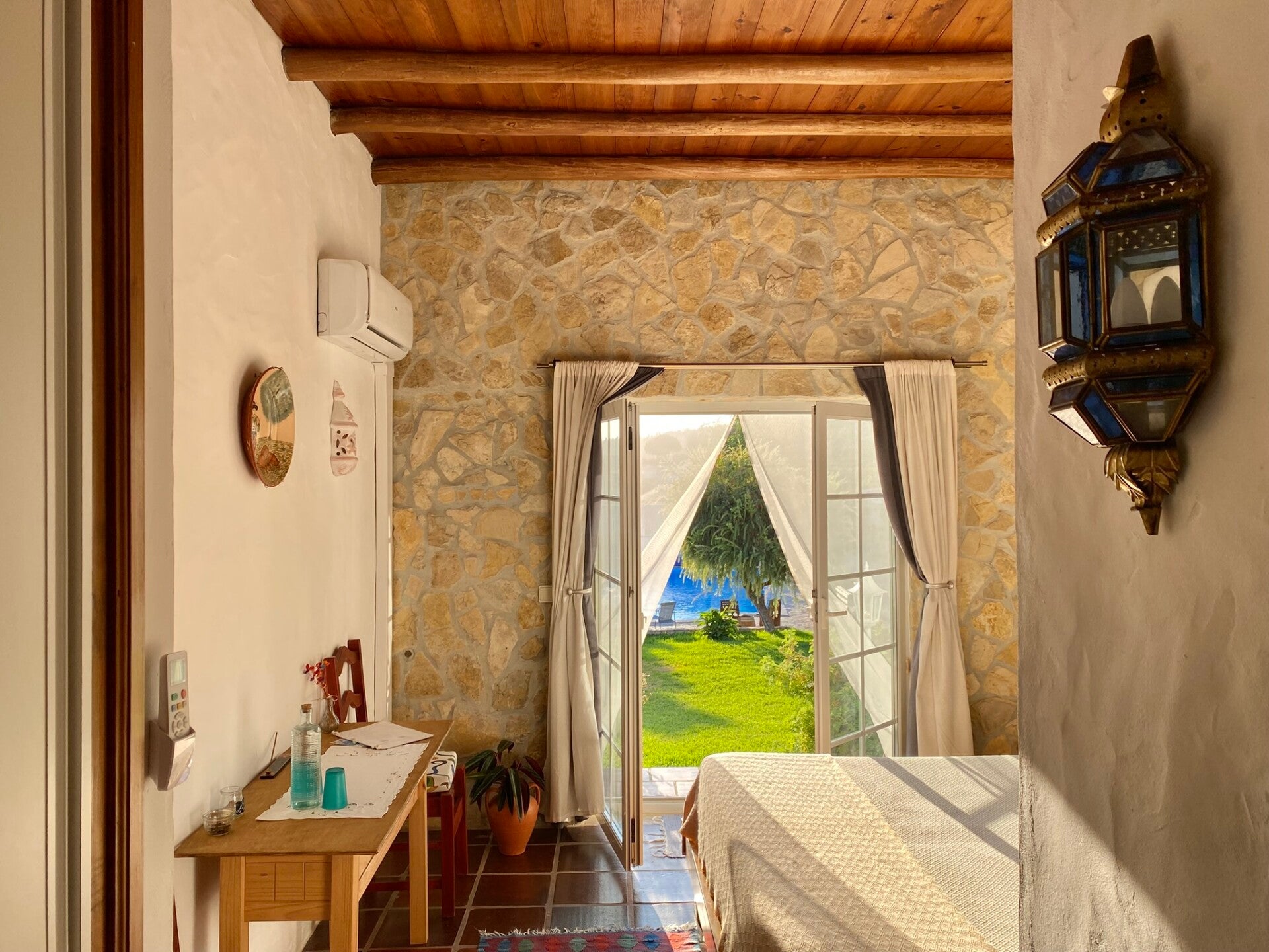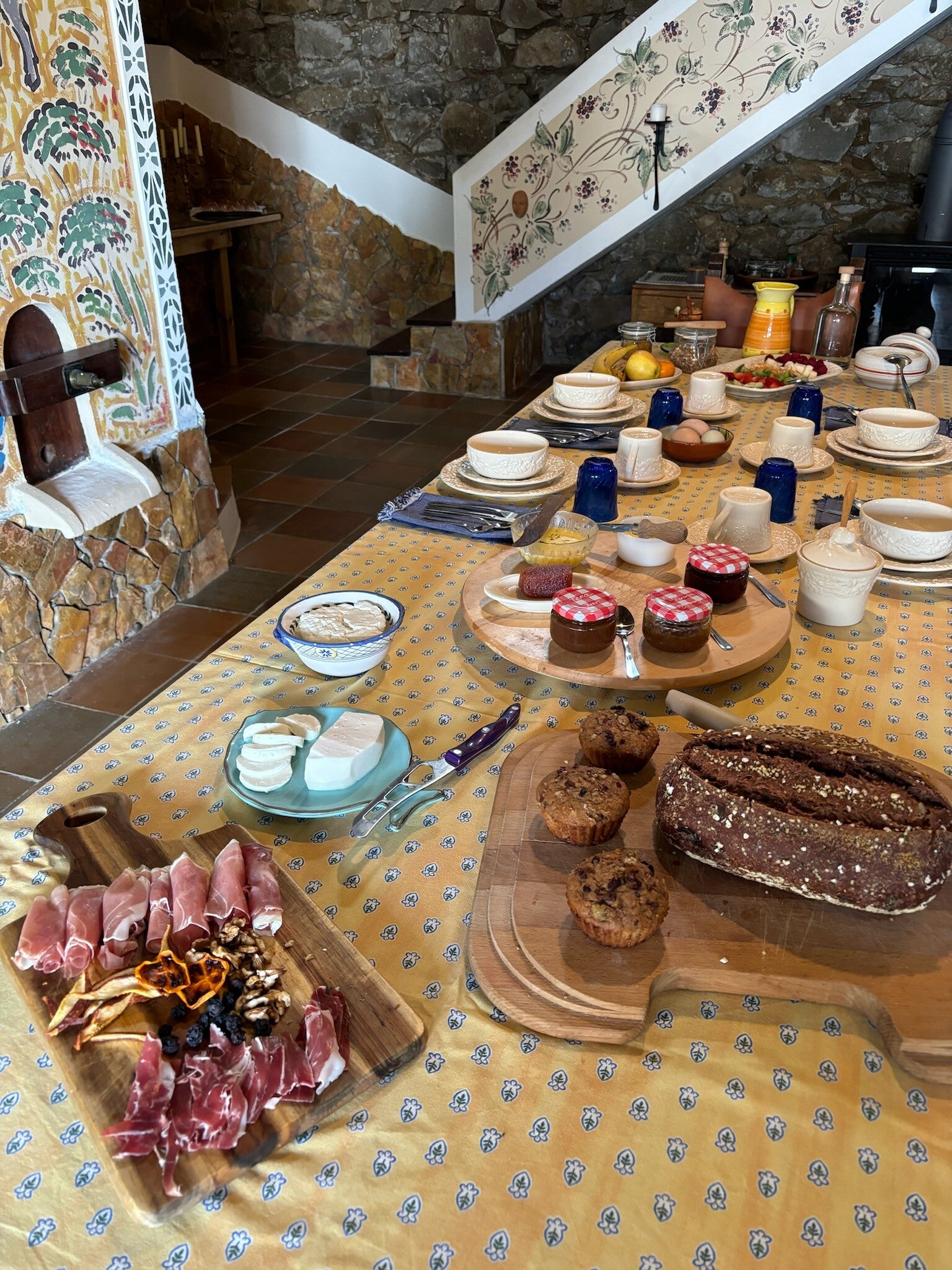 Die Quinta Mourada liegt in der sanften Hügellandschaft der portugiesischen Silberküste, rund 50 Minuten nördlich von Lissabon und nur wenige Kilometer von Lourinhã und seinen Stränden entfernt. Das Anwesen erstreckt sich über fast vier Hektar mit Weinreben, Obstgärten und einem kleinen Wald. Diese natürliche Umgebung schafft eine ruhige Atmosphäre, in der Gäste Abstand vom Alltag finden. Das Haus verbindet authentisches portugiesisches Handwerk mit Vintage-Elementen und einem bewussten, nachhaltigen Lebensstil. Die Quinta versteht sich als Ort für echte Begegnungen mit der Natur und mit sich selbst. Das Konzept setzt auf Entschleunigung, Wohlbefinden und eine persönliche, intime Atmosphäre. Ein historischer Weinkeller, eine finnische Sauna und gemütliche Aufenthaltsbereiche laden zum Entspannen ein. Die wenigen Zimmer und ein Apartment sorgen dafür, dass die Stimmung ruhig und individuell bleibt. Morgens erwartet die Gäste ein liebevoll zubereitetes Frühstück mit regionalen, oft biologischen Produkten. Hausgemachtes Sauerteigbrot, Granola, Joghurt, Eier vom Hof und saisonale Früchte spiegeln den natürlichen Ansatz des Hauses wider. Auch eigener Wein und Kräutertees aus dem Garten gehören zum Erlebnis. Mehrere Gemeinschaftsbereiche, eine Lounge mit Projektor sowie Außenbereiche mit Pool und Grillplatz schaffen Raum für Begegnungen. Zusätzlich stehen Freizeitangebote wie Tischtennis, Spiele, kreative Materialien und sogar Musikinstrumente bereit. Die Quinta eignet sich besonders für kreative Auszeiten, kleine Retreats oder romantische Aufenthalte in der Natur. So entsteht ein Ort, an dem Gäste zur Ruhe kommen, neue Energie sammeln und die portugiesische Landschaft in authentischer Atmosphäre erleben.