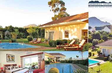 Das luxuriöses B&B Somerset Sights liegt in Somerset West an den Hügeln des Helderbergs, der Heimat des nahegelegenen Helderberg Naturschutzgebietes mit schönen Wanderwegen durch eine faszinierende Fynbos Pflanzenwelt. Vom B&B aus haben Sie einen atemberaubenden Blick auf das Meer und die Berge der „Hottentots Holland Mountains“. Die Aussicht umspannt die gesamte False Bay. Im Osten begrenzt durch die Berge, geht der Blick weiter entlang der Küste bis zum Tafelberg, über Muizenberg und Simons Town bis zum Kap der guten Hoffnung.