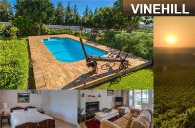 Hoch oben, an den Westhängen des Helderbergs gelegen, inmitten der Weinberge und nur wenige Gehminuten von zwei Weingütern entfernt. Vinehill ist stolz darauf, zwei sichere, luxuriöse Selbstversorger-Einheiten mit Panoramablick anbieten zu können. Diese erstrecken sich vom Cape Point zu den Lichtern von Cape Stadt im Westen bis zu den schroffen Boland-Bergen im Osten. Die Städte Stellenbosch und Somerset West mit ausreichenden Einkaufsmöglichkeiten sind zehn Autominuten entfernt. Der internationale Flughafen Kapstadt ist 30 Minuten entfernt. In der Gegend gibt es viele Golfplätze, Strände, Wanderwege, Walbeobachtungen und andere Outdoor-Aktivitäten, zu viele, um sie alle aufzuzählen. Ein wahres Paradies für Sonnenhungrige. Wenn Sie spektakuläre Sonnenuntergänge mögen, ist dies der richtige Ort für Sie. Bitte beachten Sie, dass in der Gegend (siehe Karte), einem wahren Mekka für Mountainbiker, verschiedene Mountainbike-Routen eröffnet wurden .