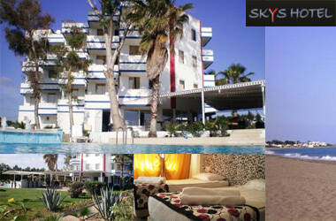 Das familiär geführte Skys Hotel befindet sich in Kizilot , einer kleinen, noch typisch ursprünglichen Ortschaft am Rande der bekannten Urlaubs- und Touristengebiete , bei Side / Antalya, direkt am Strand.